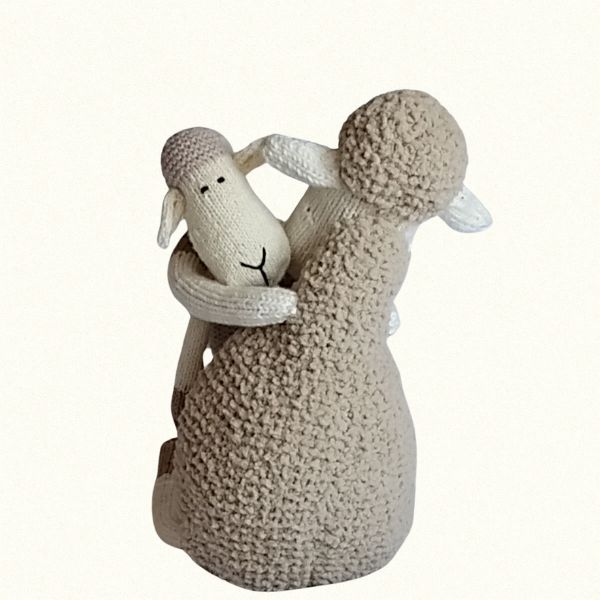 Realizadas en lana especial para bebés y algodón 100%, no contienen piezas duras ni elementos desprendibles. Todo está tejido o bordado a mano, incluso los ojos y la sonrisa. El relleno es blando y ligero, para que puedan abrazarse sin riesgo. 100% seguras y suaves al tacto.